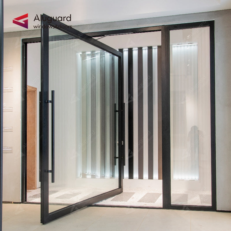 Our premium Aluminum Pivot Door offers a fusion of modern and pastoral elegance, designed with an innovative sealing structure that ensures a watertight connection between the door slab and the surrounding frame.